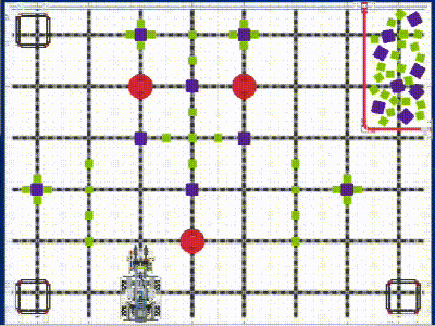 An efficient route plan empowers Virtual Byte to accomplish more tasks within the limited game time. The shorter driving distance and smaller rotational angles result in less travel time. Furthermore, an efficient route design can prevent the robot from driving onto Blocks, which could cause deviations from the target.